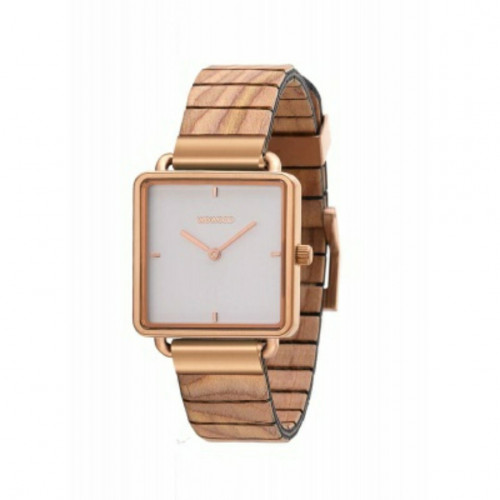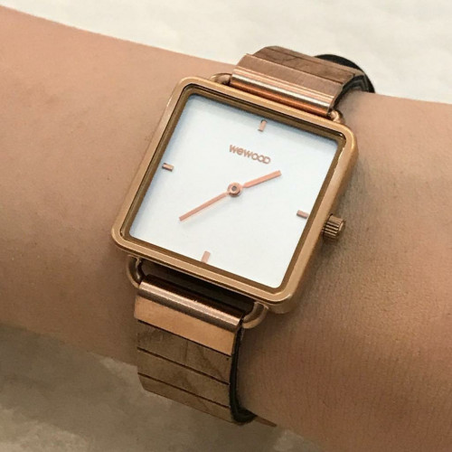 ساعة نسائية بتصميم مربع أنثوي رقيق يجمع بين الفخامة والبساطة