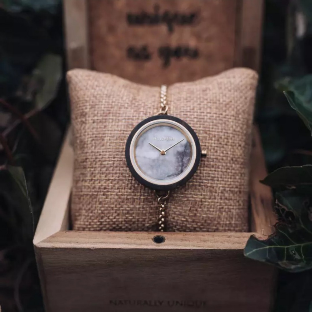 خشب غامق مع ستيل ذهبي ومينا رخام