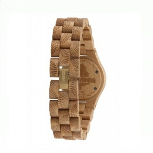ساعة نسائية بالخشب الفاتح المنقوش مع إطار ذهبي