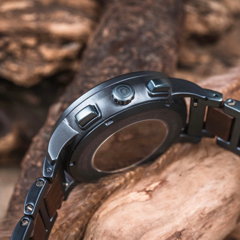 كرونوغراف رجالي بالخشب الغامق مع ستيل كحلي