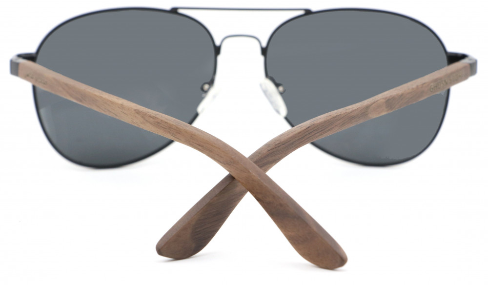 نظارة غصن الشمسية بخشب الجوز وإطار معدني أسود وعدسة رمادية Polarized