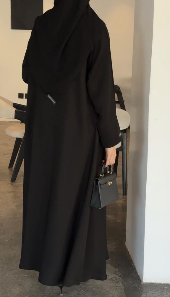 طول العباية يؤخذ من الكتف الى أسفل الكعبين (من الأمام)