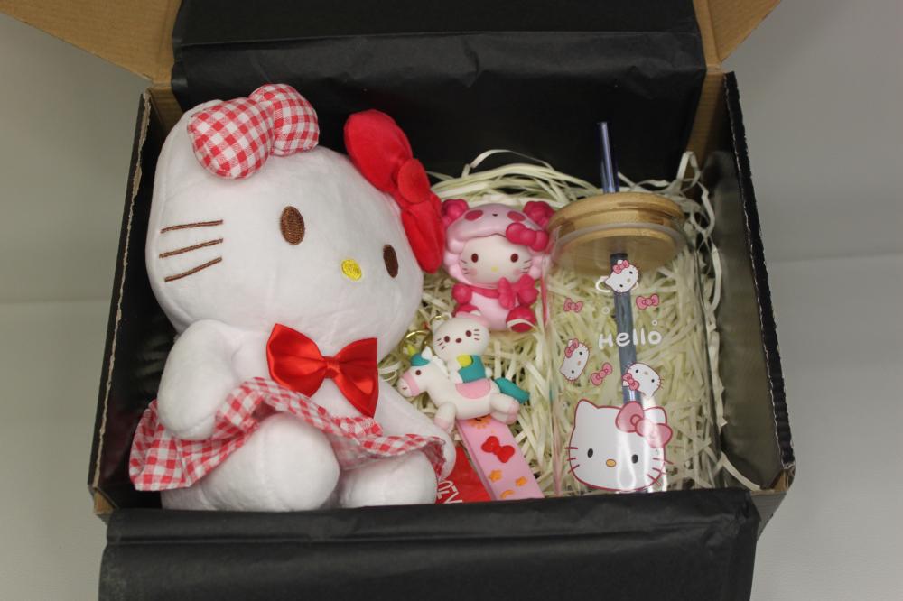 جميع المنتجات توضع في بوكس فخم وجميل وعليه الكثير من ملصقات هيلو كيتي.