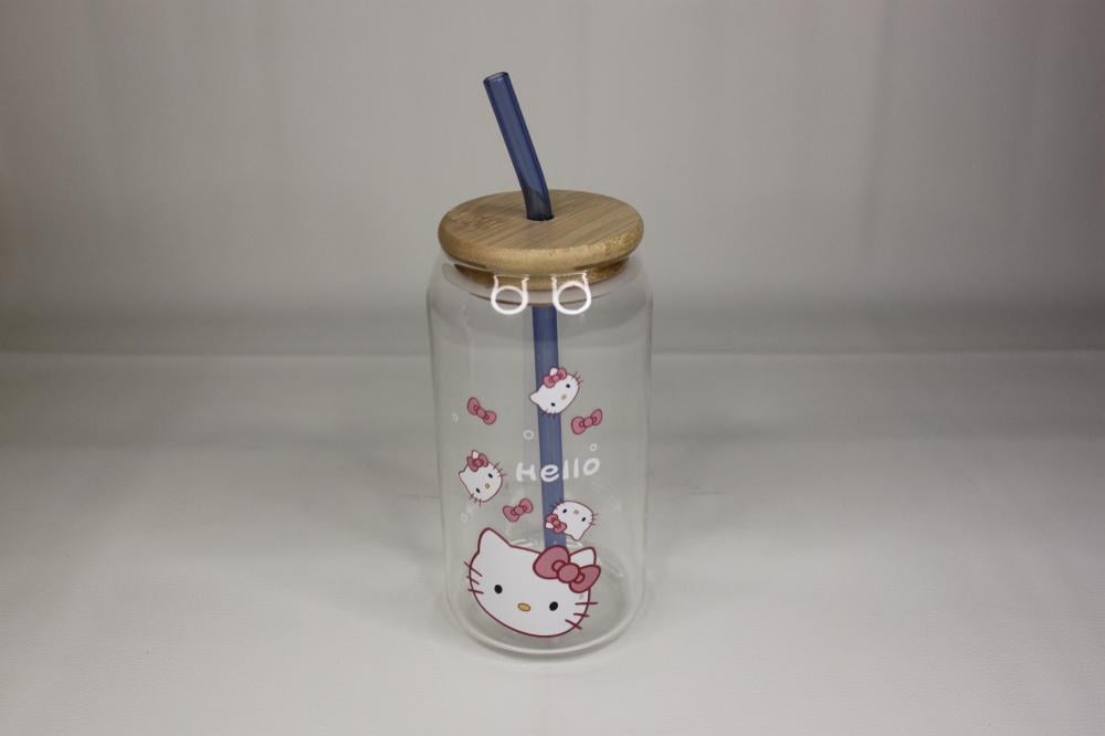 2- كوب زجاج مع غطاء خشبي ومصاص.