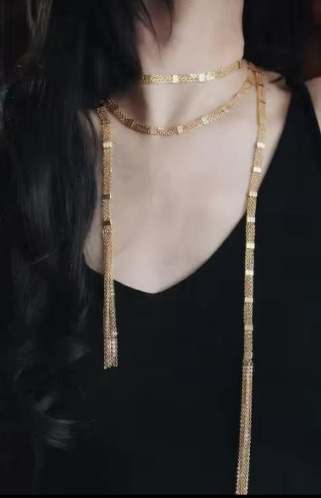 عقد طويل مطلي ذهب