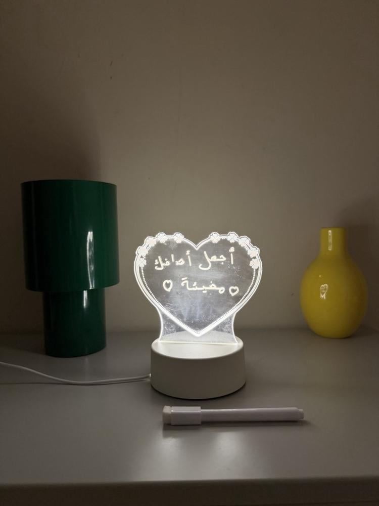 سبورة مضيئة بتصميم أنيق وعصري مصنوعة من الأكريليك الشفاف عالي الجودة، تمنحك مساحة أنيقة للكتابة أو الرسم مع إضاءة LED ناعمة تبرز المحتوى بشكل جميل وواضح، خاصة في الإضاءة الخافتة.