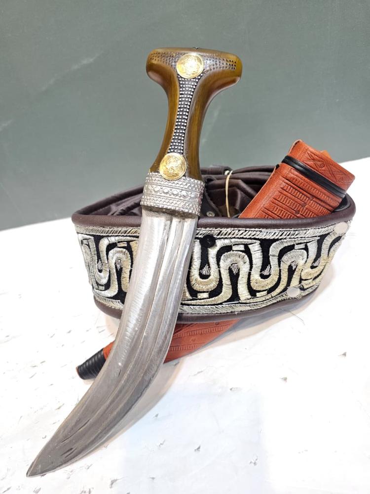 شفره تقص الحديد سله سسته تفصيل نجراني محلي غلاف تفصيل والحزام زبيدي اللون بُني العرض ٣ سم الطول ٣٠ سم