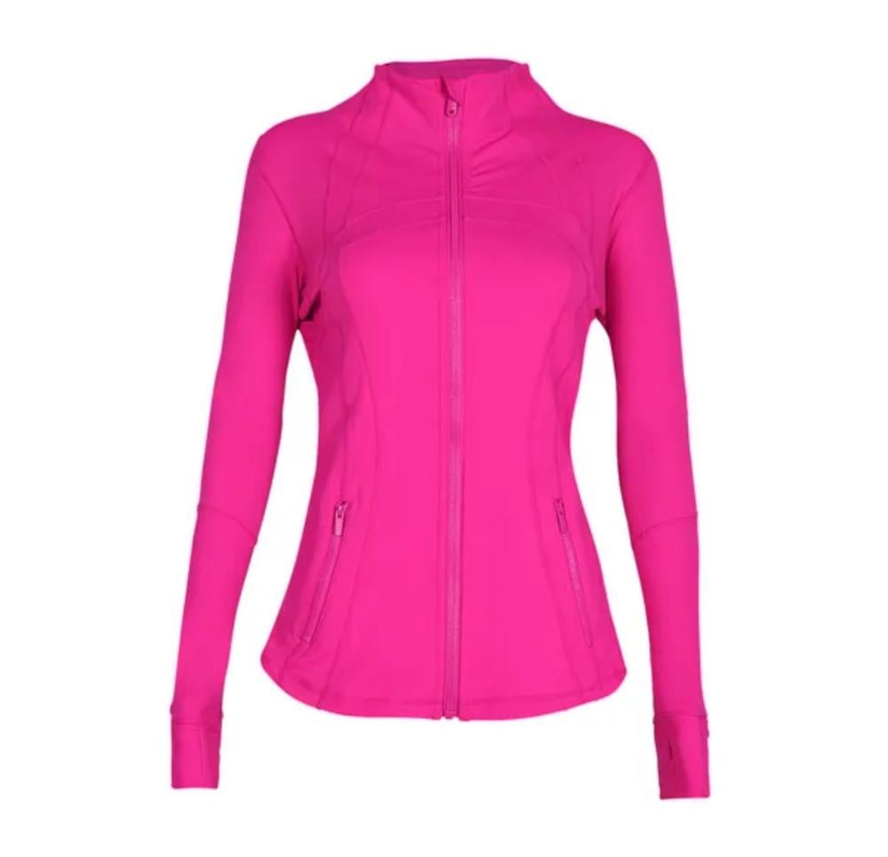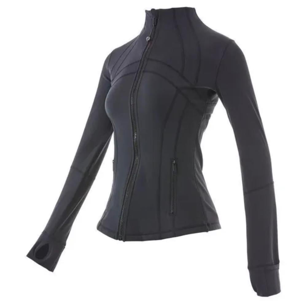 جاكيت نسائي رياضي بأكمام طويلة مع جيوب ، قمة عالية المرونة ، معطف بسحاب ، اللياقة البدنية ، التشكيل ، الجري ، التمرين طبق الإصل الطلب يستغرق أسبوعين