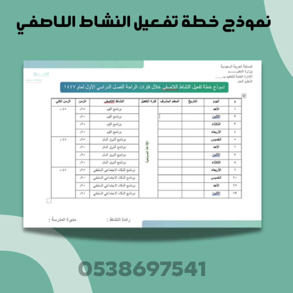 - نموذج خطة لتفعيل النشاط اللاصفي في الفترة الصباحية