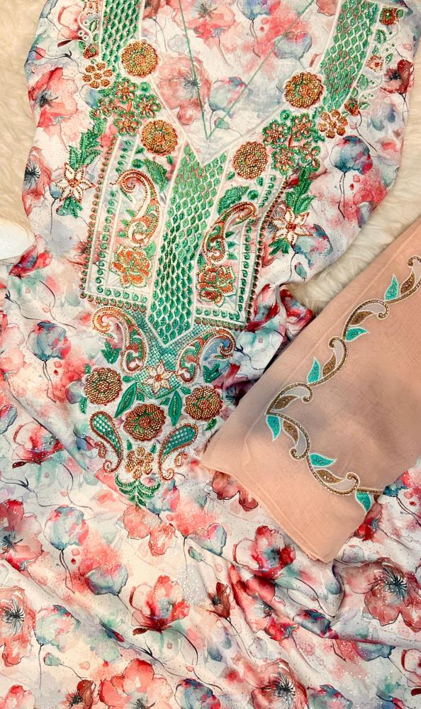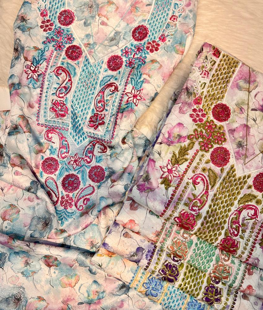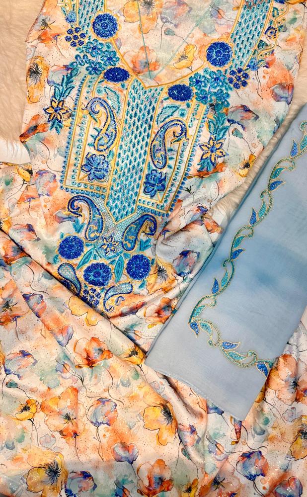 🔹 التطريز: تطريز 3D أنيق مع فصوص لامعة مقاس 6، يضيف لمسة من البريق والأناقة.