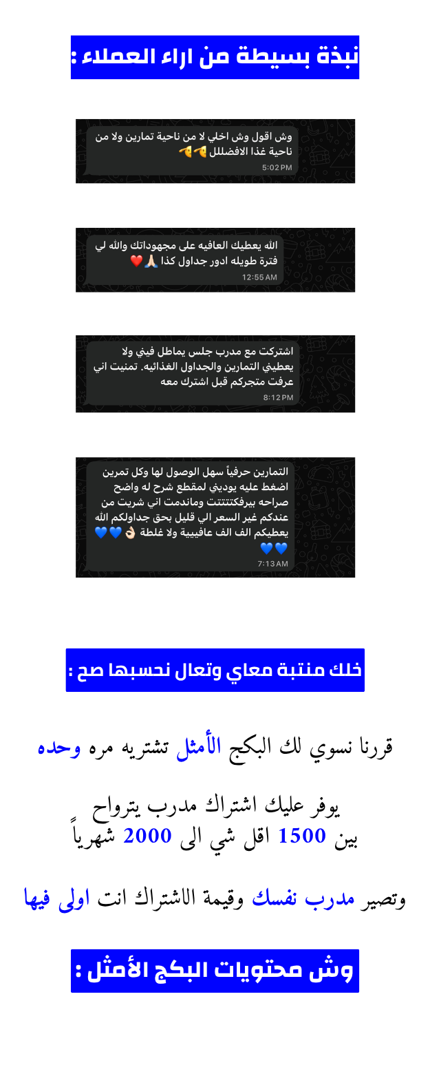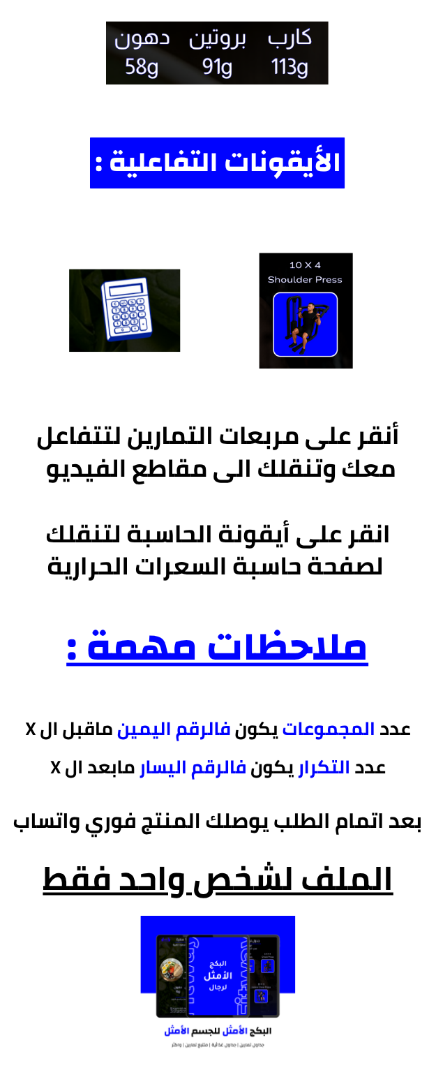 كل شيء محسوب لك بالسعرات و البروتين و الكارب والدهون عشان تتابع تقدمك بدقة.