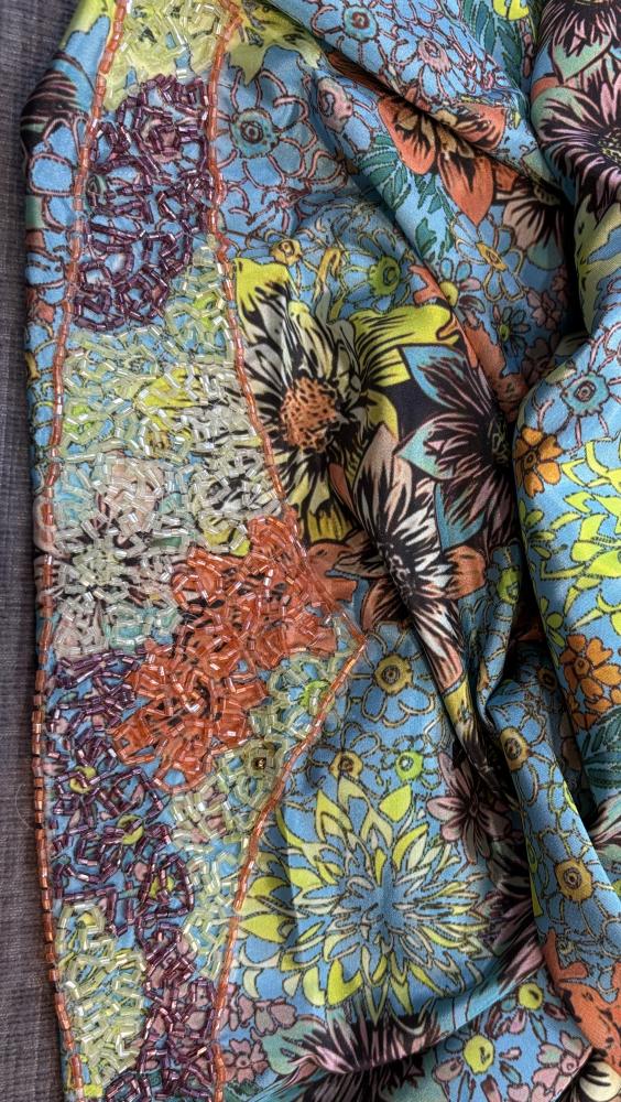 الوصف / قماش حرير ايطالي مزين بالشك اليدوي الفاخر