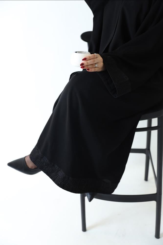 - لون أسود داكن يمنح العباية لمسة من الأناقة والتميز