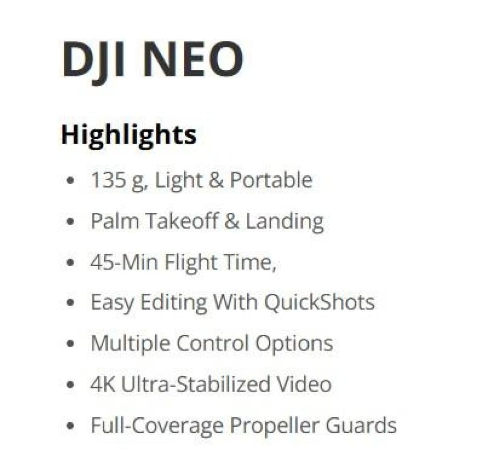 اسم الطـــــــراز : DJI دي جي اي طائرة درون نيو NEO COMBO