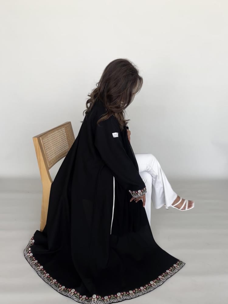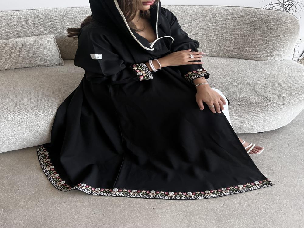 #17 قماش العبايه : شمالي القصه : نص كلوش كلفه بالاكمام ودار مدار العبايهالطرحه : طرف قيطان باللون الابيض السعر: ٢٧٥