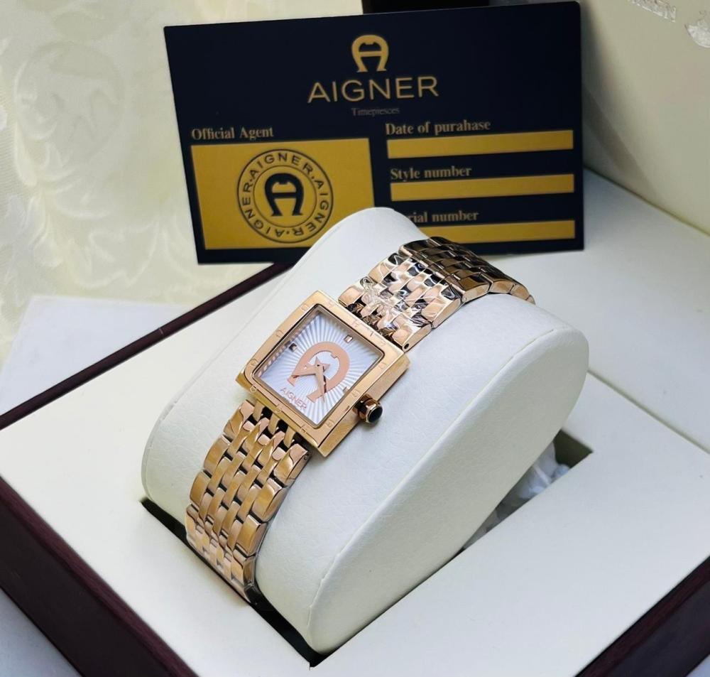 ساعة انقر مربعه بتصميم أنيق وفاخر بإطار ذهبي وميناء أبيض