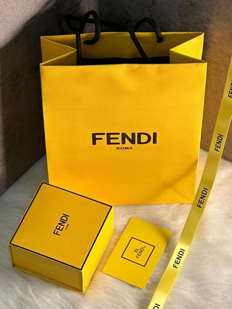 الوصفملحقات فندي الاصليةمكون من 4 قطع (علبة + كيس بالشعار+شريطة الماركة+كرت)مناسب لجميع اكسسوارات فندي(للاطقم والسلاسل والحلق والاساور)مناسبة لتقديمها هدية فاخرهمقاس البوكس 10 سم * 10 سمبأمكانك اضافة مع اي من اكسسوارات فندي