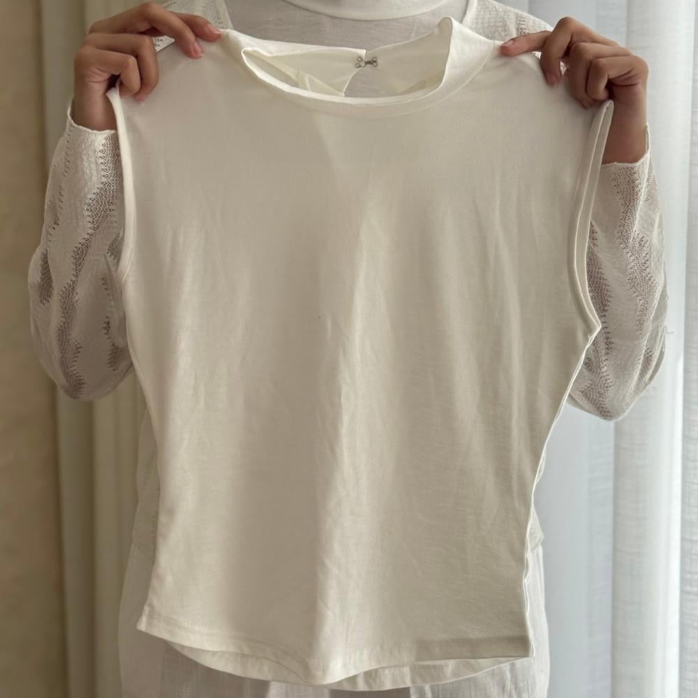 • الخامة: 100% قطن• بدون أكمام• رقبة عالية مع مشبك إغلاق خلفي• مثالي كـ layer تحت الملابس• مقاس واحد مناسب لـ XS-M