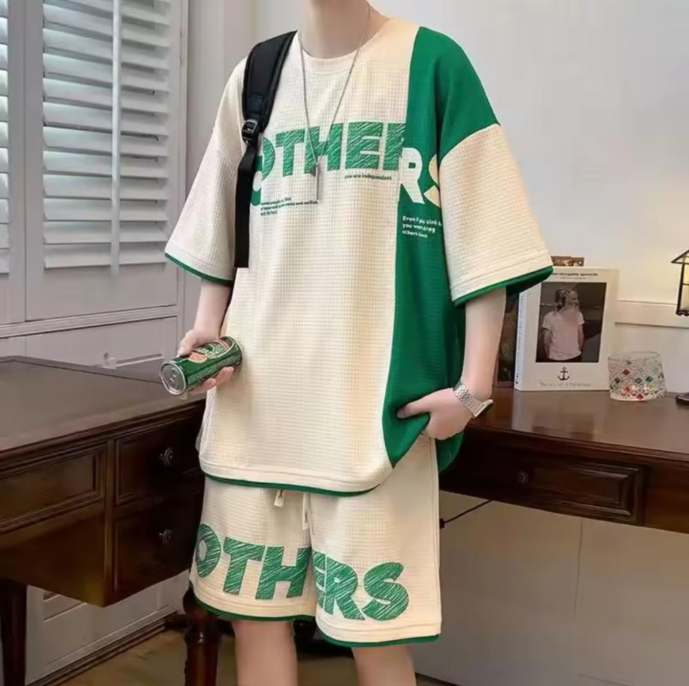 بدلة كاجوال للرجال صيفية رفيعة بأكمام قصيرة تي شيرت للشباب زي كرة السلة العصري Walf Checks مجموعة ملابس متطابقة