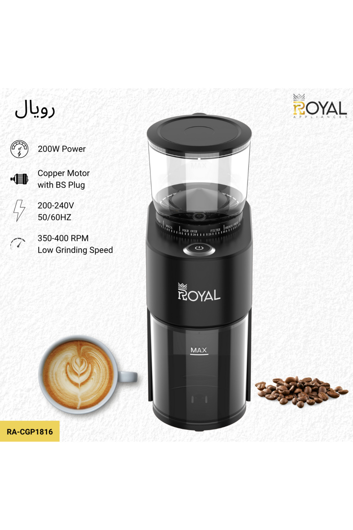 مع القدرة على تحضير الإسبريسو، القهوة المقطرة، القهوة الباردة، والقهوة الفرنسية، تتميز هذه المطحنة بتصميمها الأنيق باللون الأسود.