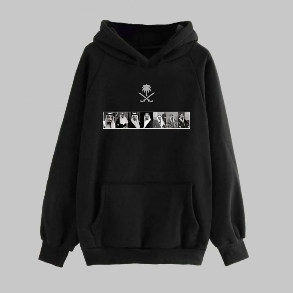هودي حصري بتصميم يجسد فخر المملكة عبر صور الملوك مع الشعار الوطني، مطبوع بطباعة عاكسة تضيف لمسة من الاعتزاز والأناقة.