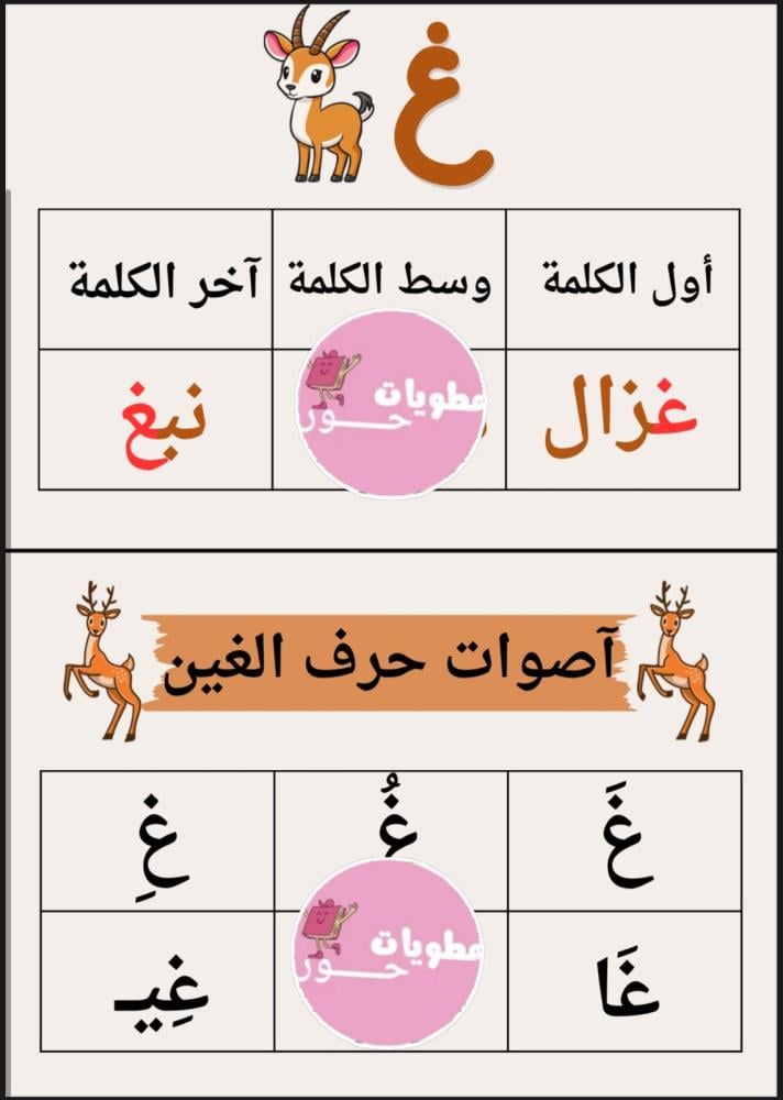 مطوية اول ابتدائي لغتي حرف الغين لفصل الثاني