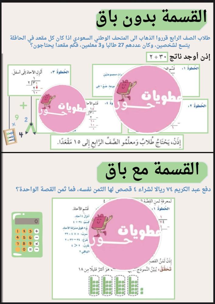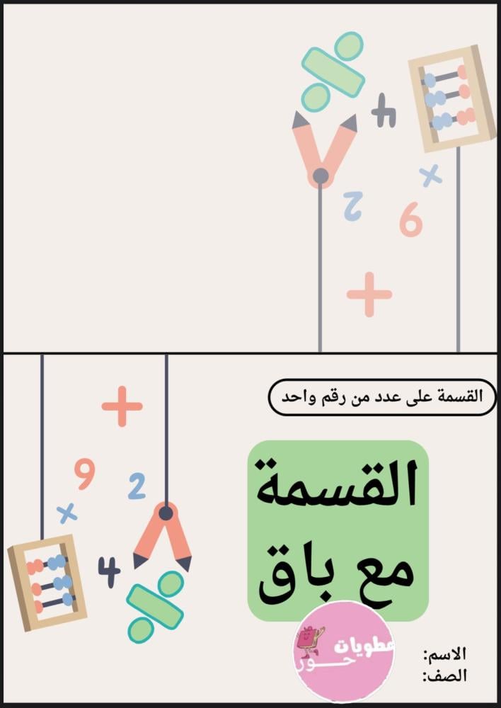 مطوية رابع ابتدائي الرياضيات القسمة على عدد من رقم واحد (القسمة مع باق) الفصل الثاني