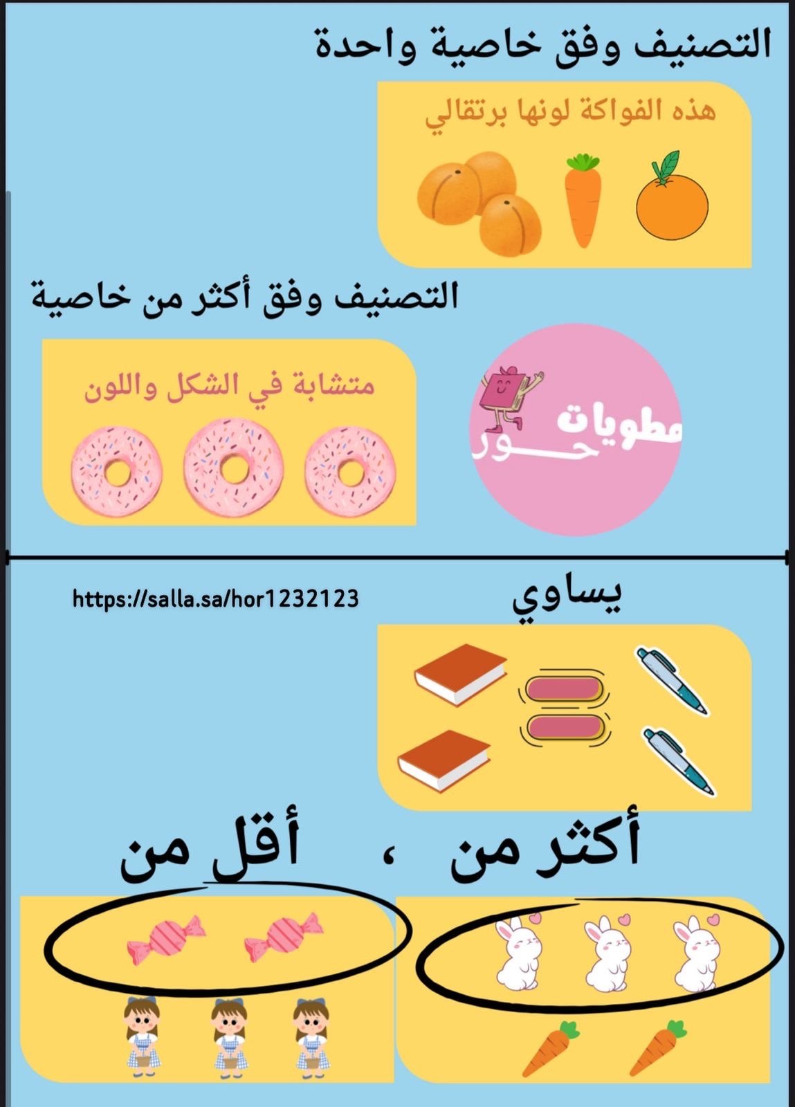 مطوية لصف اول ابتدائي الرياضيات للفصل الاول لدرس المقارنة والتصنيف