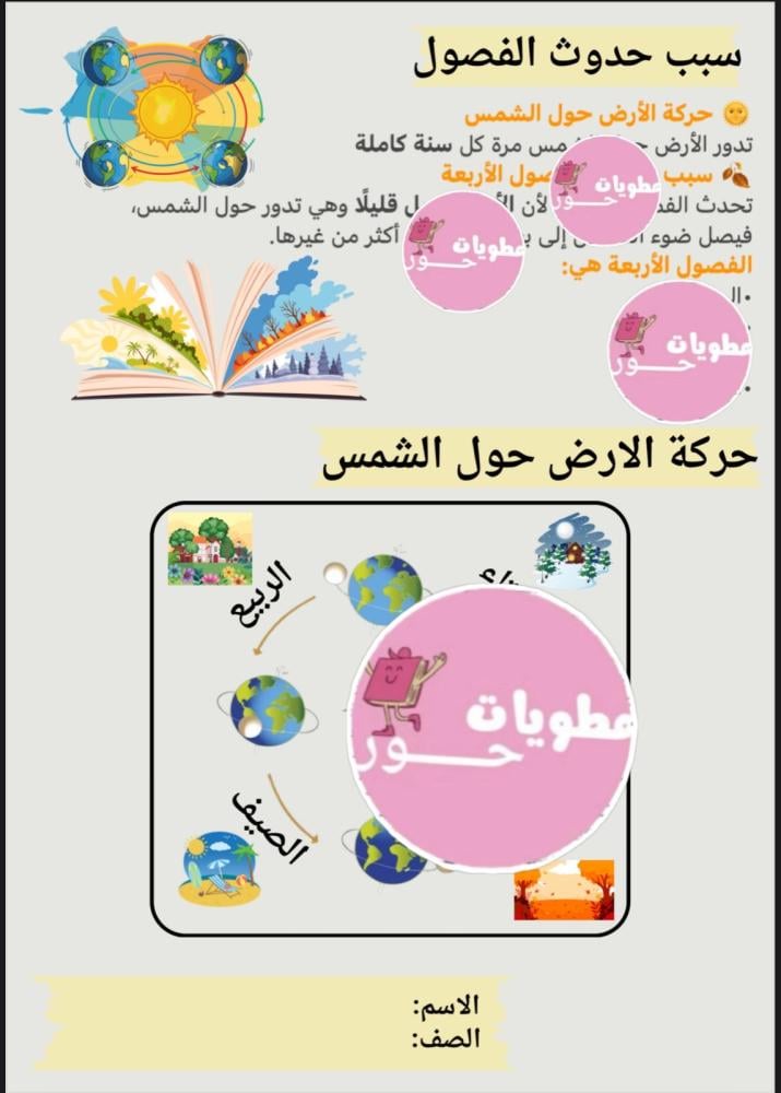 نشاط ثاني ابتدائي العلوم سبب حدوث الفصول الفصل الثاني