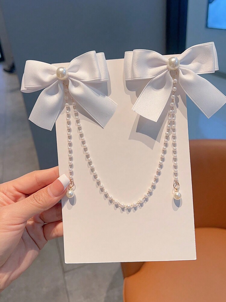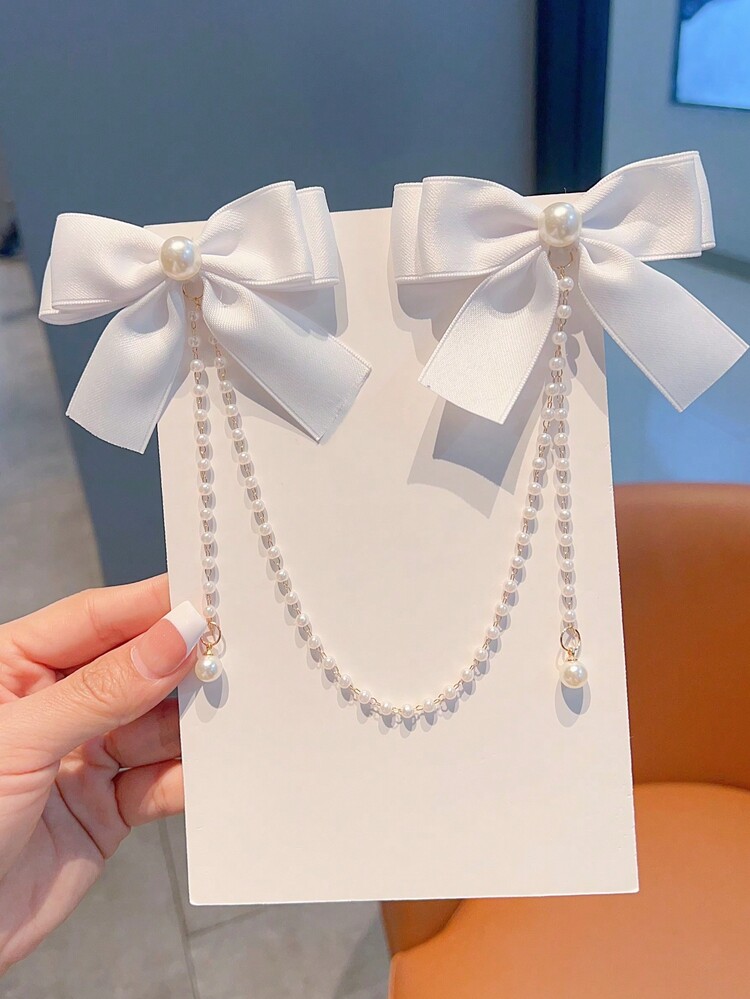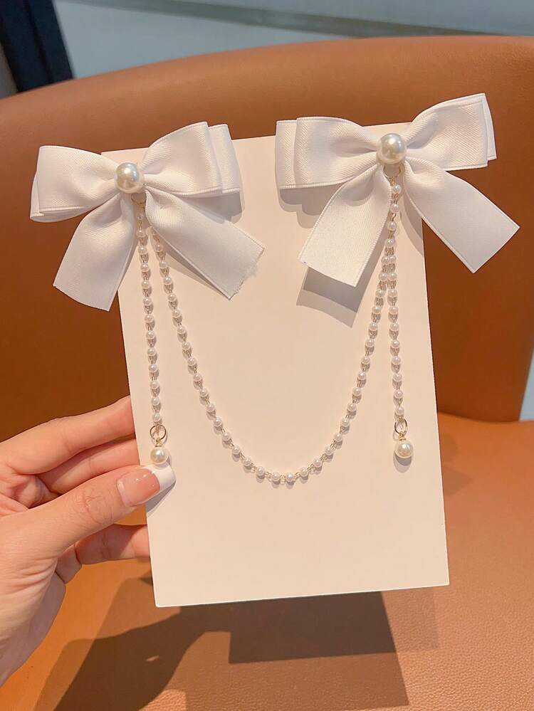 مشبك شعر بنات أنيق مزين بفيونكة اللؤلؤ والشرابة