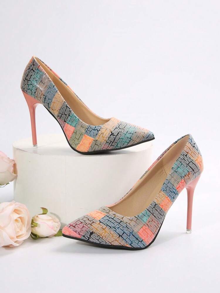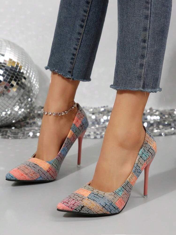 أحذية نسائية بتصميم جديد، أحذية ذات كعب عالي بتفاصيل مطبوعة بطراز متنوع، إصبع القدم مدبب مع كعب إبرة