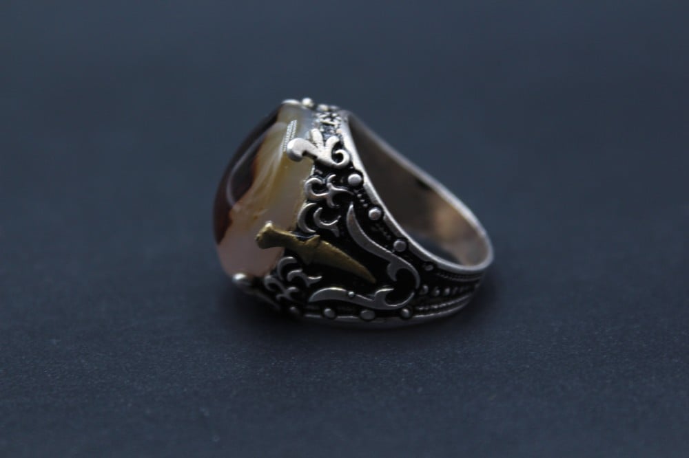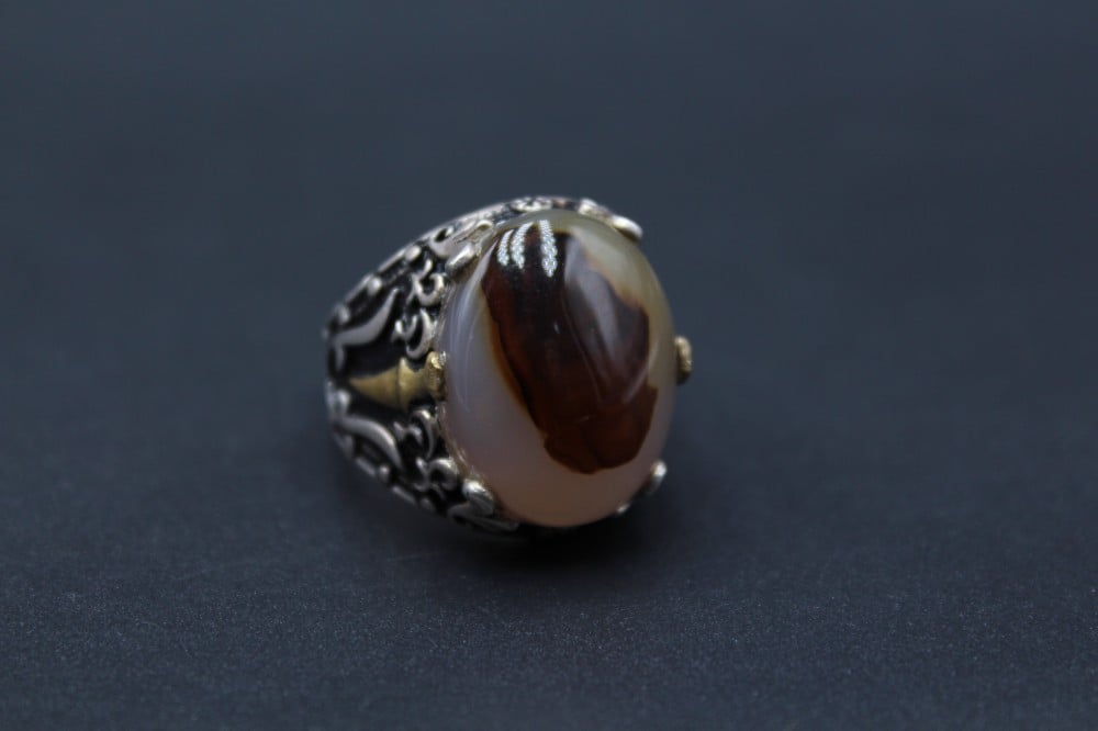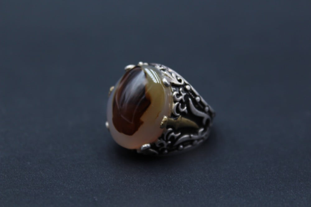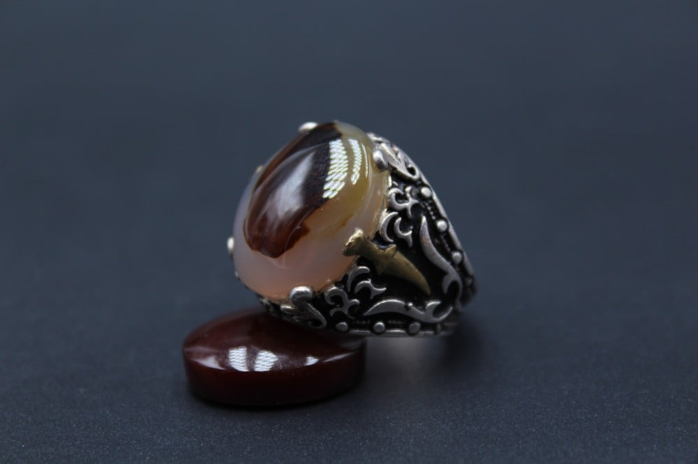 خاتم عقيق يماني مصور بصياغة يمانية فضة عيار 925