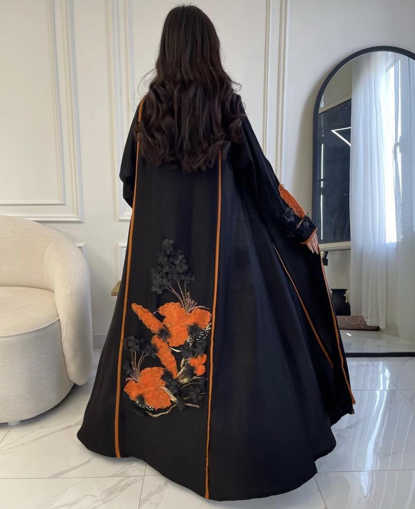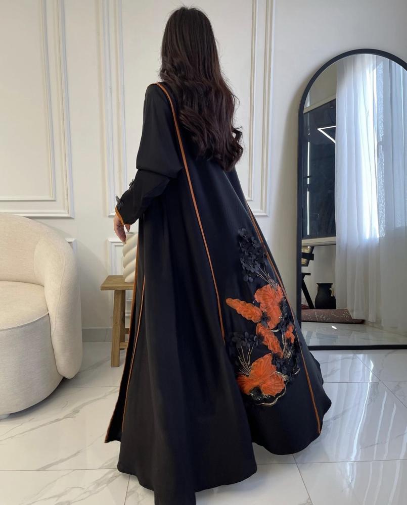 القماش : كريب ناعم ، كلفه ورد بالخلف والاكمام .