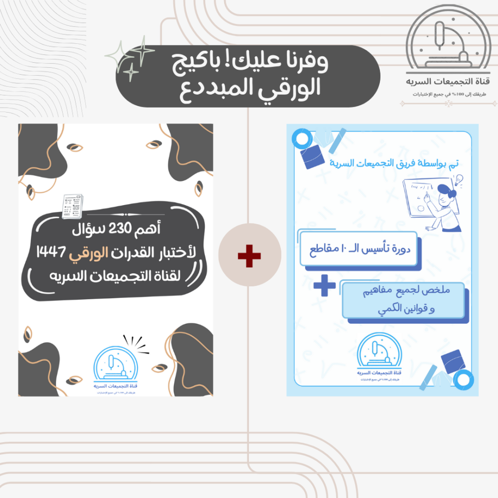 الملف الي بيكون معك خطوة بخطوة بأذن الله من صفر بالقدرات الى محترف بأشهر افكار الورقي وتحل كل سؤال ورقي يجي قدامك 📝