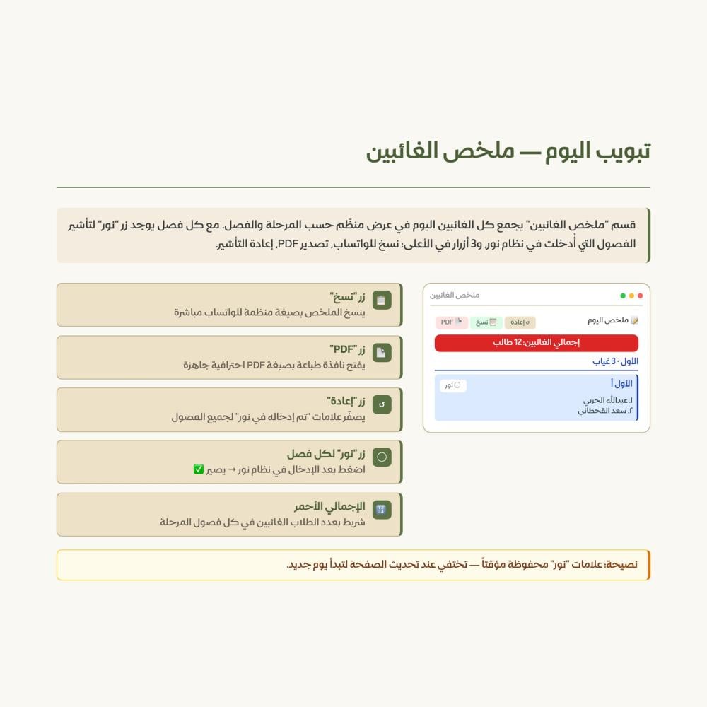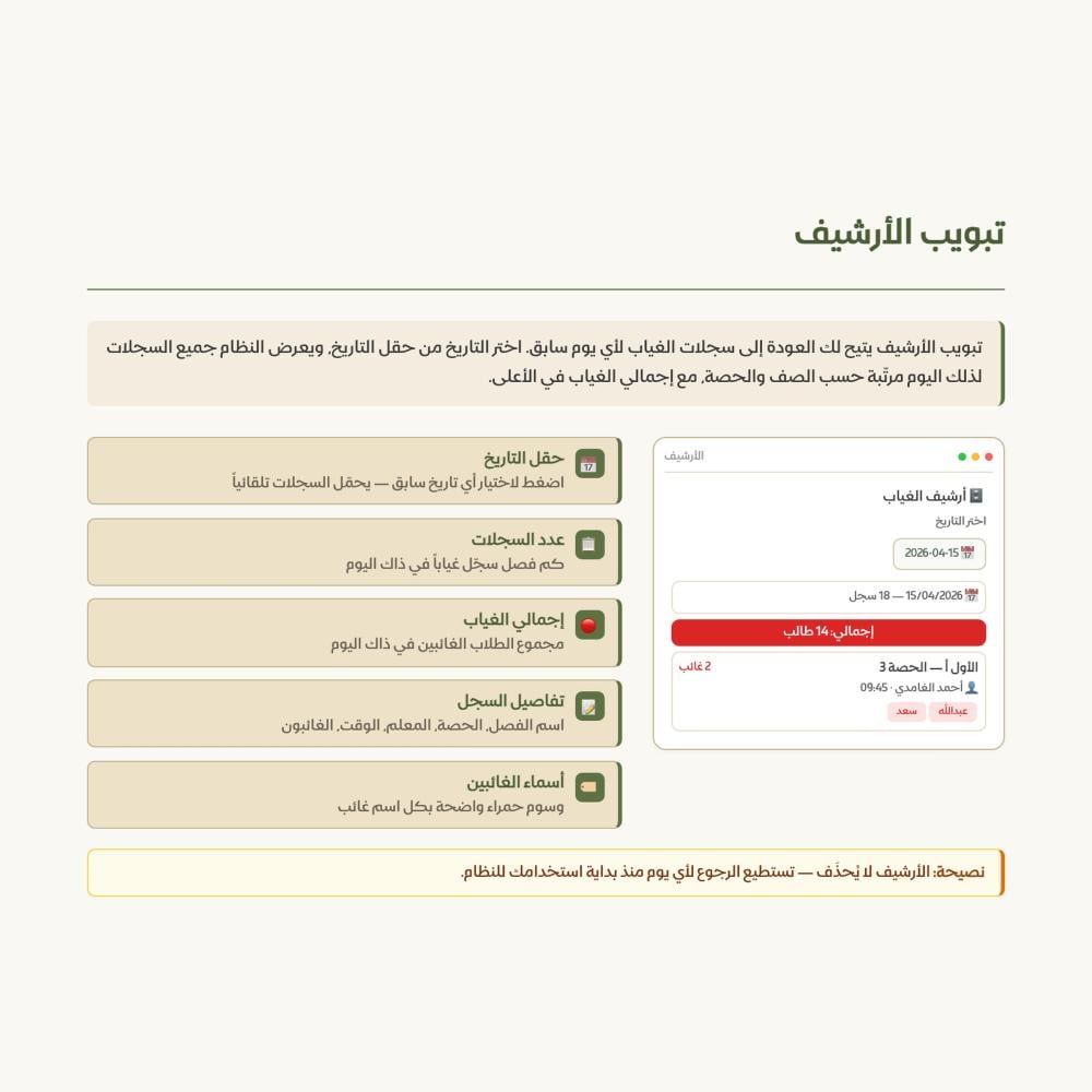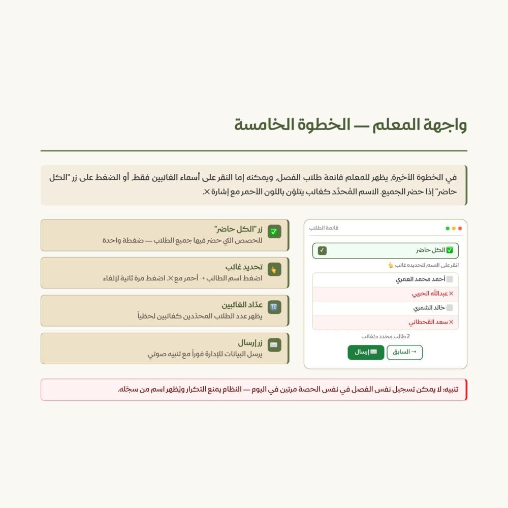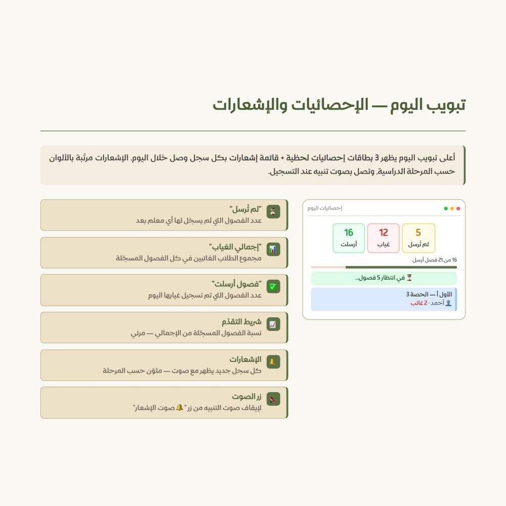 - ⚡ تسجيل الغياب خلال أقل من 10 ثواني