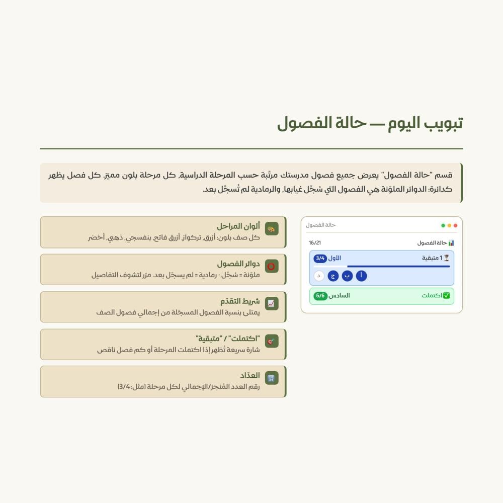 - 📊 متابعة مباشرة لجميع الفصول (من سجّل ومن لم يسجّل)