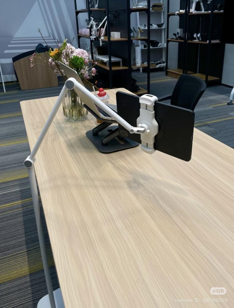 ستاند عملي يحوّل استخدام الآيباد من وضع متعب إلى تجربة مريحة بالكامل. قاعدة ثابتة بعجلات سلسة تسمح لك تنقليه بين المكتب، الصالة، أو جنب السرير بدون أي جهد. الذراع مرن وقابل للتعديل بكل الزوايا عشان توصلي لوضعية مشاهدة مثالية تحمي رقبتك وعيونك.