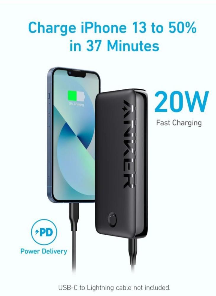 أنكر باور بانك 20 ألف أمبير بمدخلين USB ومدخل PD :