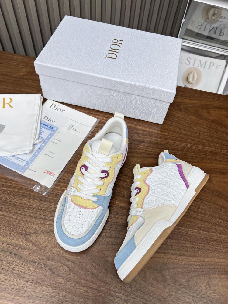 حذاء Dior One الرياضي - جلد Dior Oblique مثقب باللون الأبيض متعدد الألوان