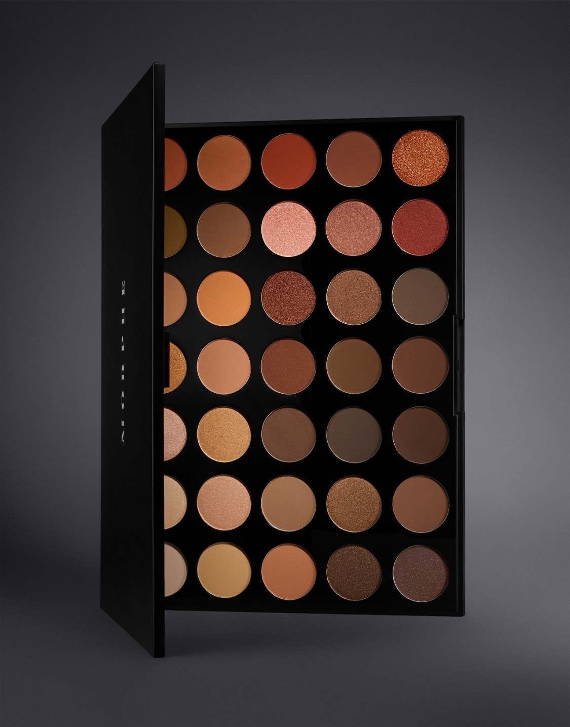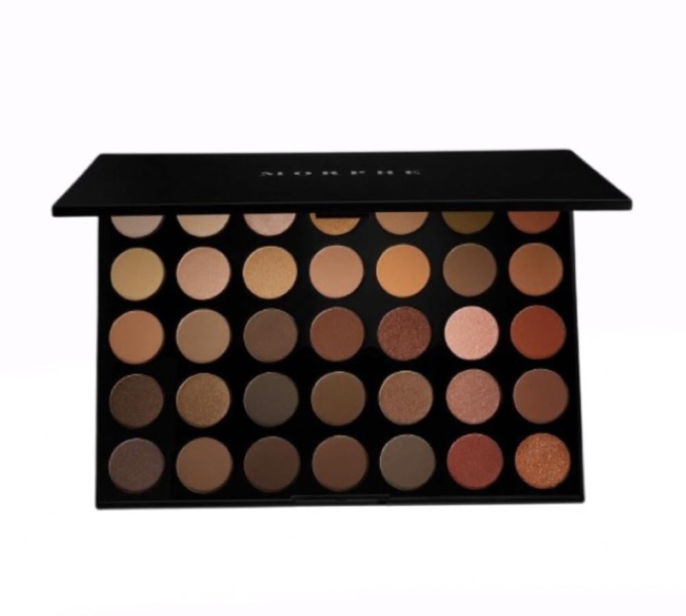 - يحتوي على 35 لونًا من ظلال العيون بتدرجات دافئة ومحايدة، تتراوح بين الألوان المطفية واللامعة والجليتر.