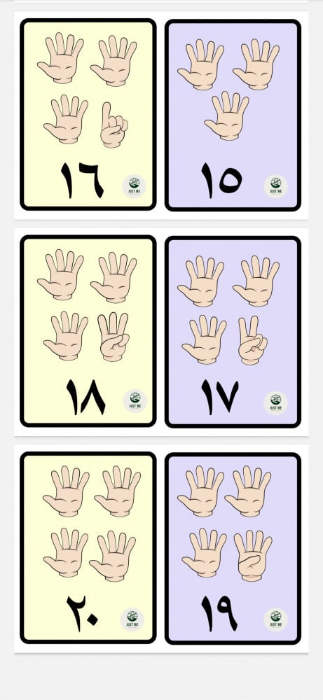 بطاقات تحتوي على الأرقام 1 حتى 20