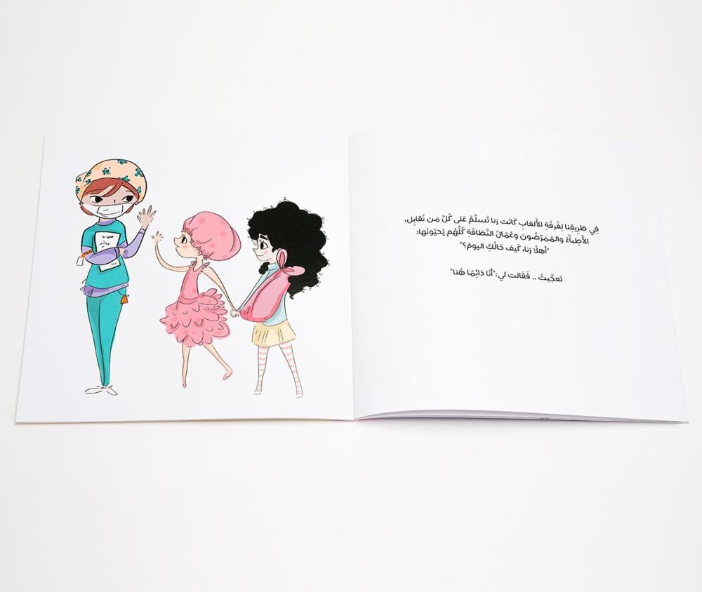 تعرفت في المشفى على فتاة جميلة وشجاعة تحب اللون الوردي، وسرعان ما أصبحنا صديقتين. زرت صديقتي في المشفى وأهديتها هدية أعجبتها كثيرا، ومع أنها كانت مريضة.. الا أنني كنت أتعلم منها في كل زيارة كيف أبتسم وأظل قوية دائما.