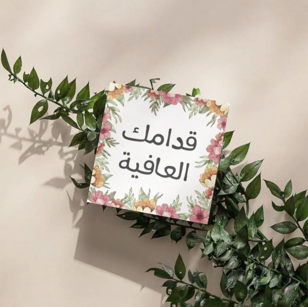 كرت قدامك العافيهالمقاس / 8*16 سممصنع من الورق المقوى كروت للهدايا والمناسبات, مقاس مستطيل قابل للطي والكتابة من الداخل
