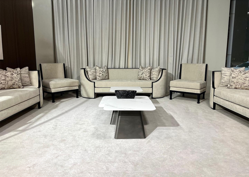 طقم نيو كلاسيك لغرفة معيشة بتصميم اللون : بيج مع أسود