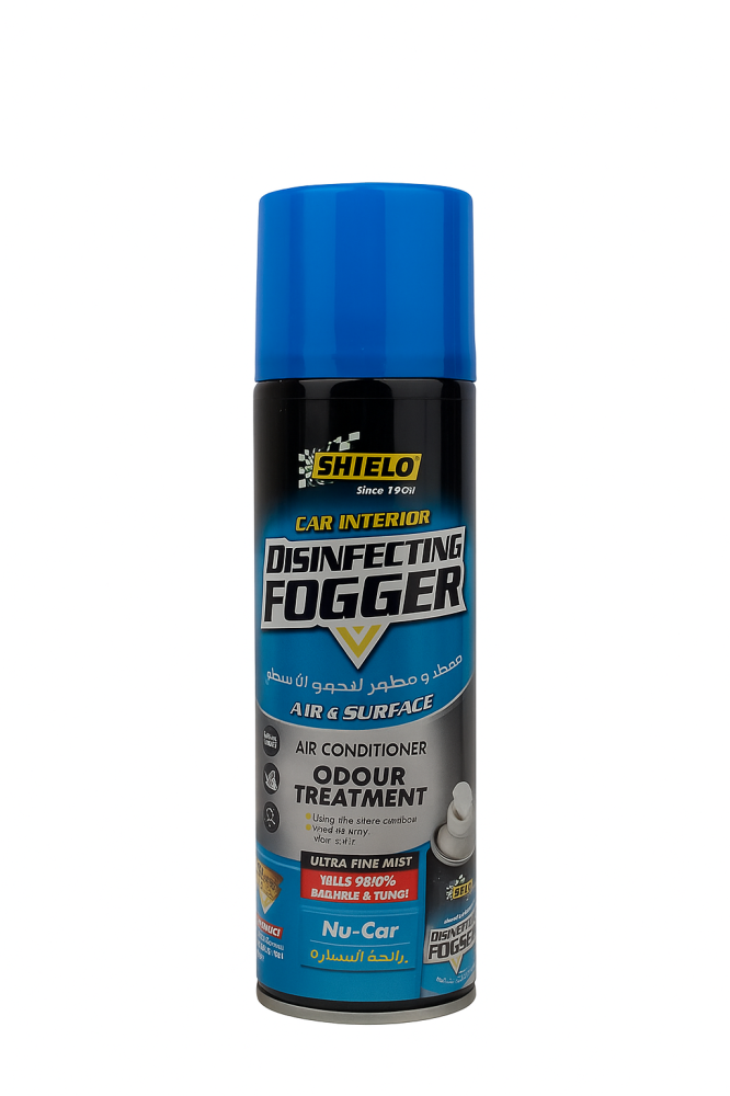 بخاخ تعقيم شيلد الداخلي للسيارة برائحة الوكالة (Nu-Car)، مصمم لتنظيف وتطهير مكيف السيارة والسطح الداخلي بالكامل. يقضي على 99.9٪ من البكتيريا والفطريات ويزيل الروائح الكريهة بفعالية.