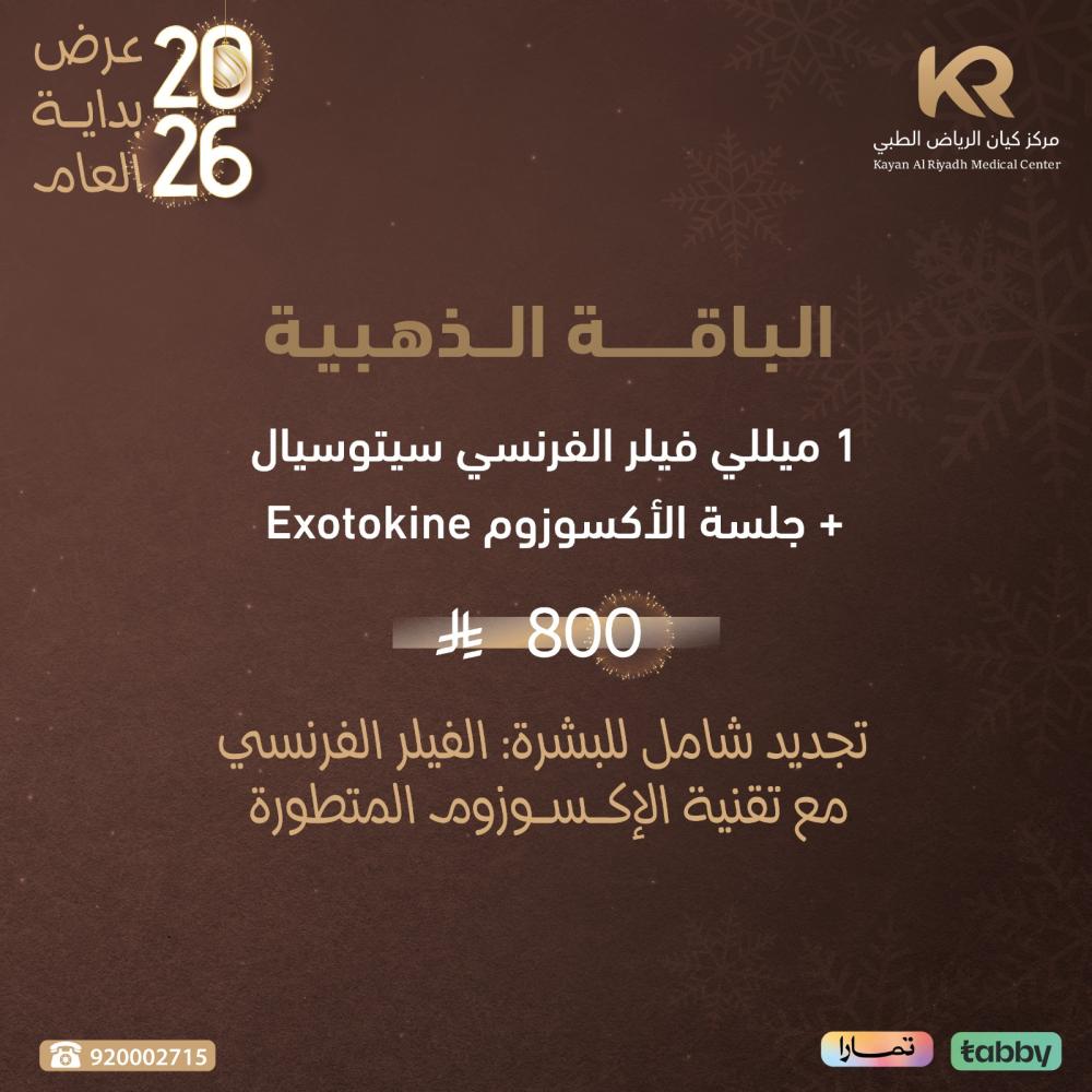 /جلدية Dermatology/الباقة الذهبية : 1 ميللي فيلر الفرنسي سيتوسيال + جلسة الأكسوزوم Exotokine تجديد شامل للبشرة: الفيلر الفرنسي مع تقنية الإكسوزوم المتطورة