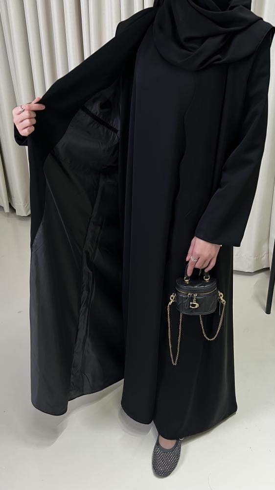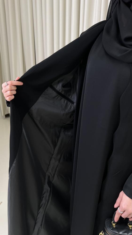 عباية نص كلوش بمنحنيات من الأمام مبطنة حرير مع جيب داخلي