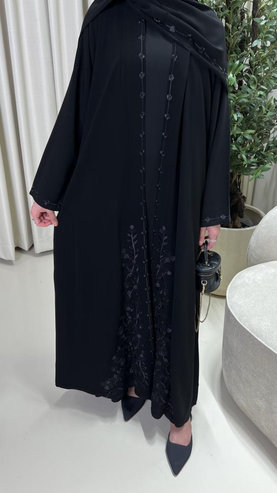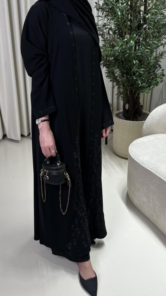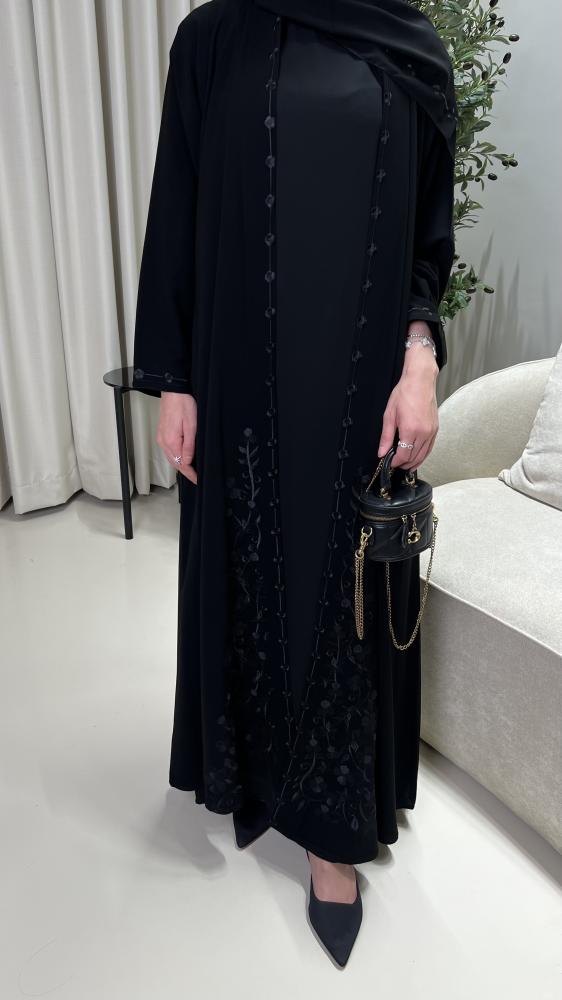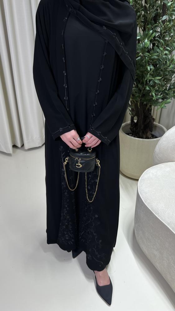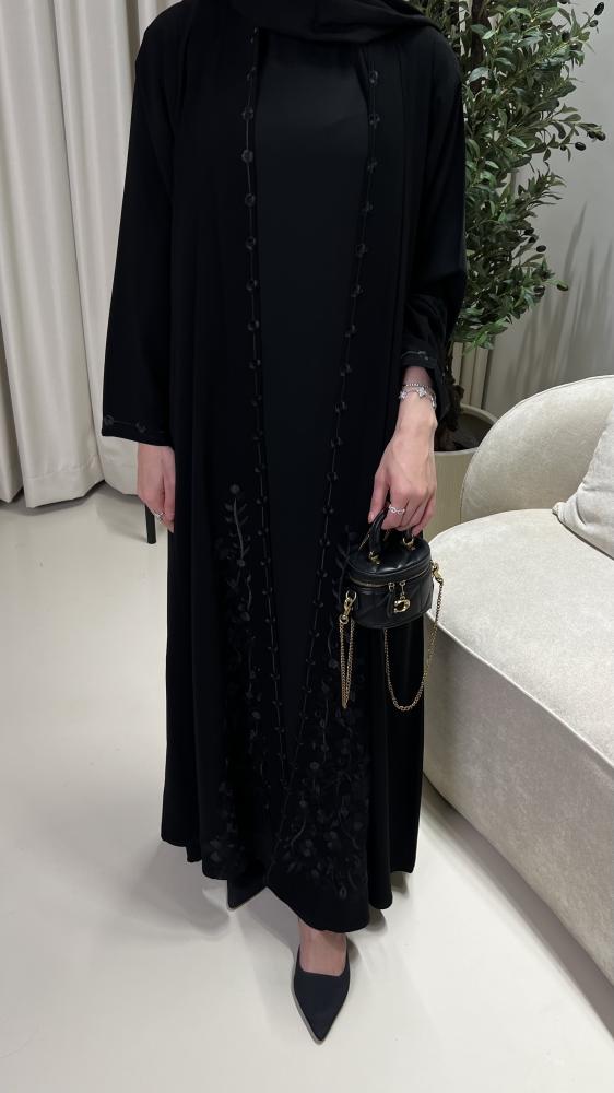 عباية نص كلوش بتطريز اسود مع الطرحة مطرزه