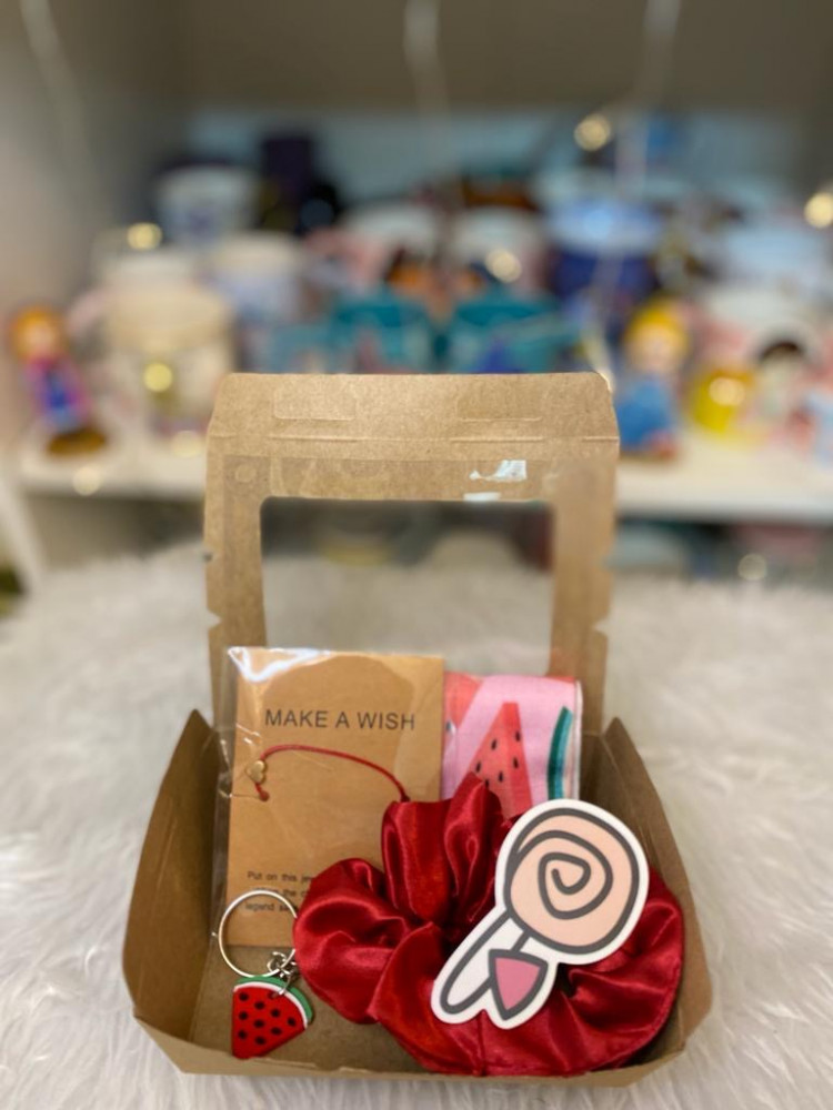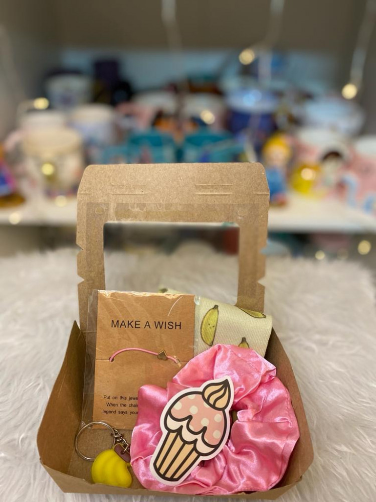سعر البوكس الواحد 14 - يرسل الشكل يرسل عشوائي ( او يتم الاختيار من قبل العميل)( شكل الاساوره قلب او نجمه- والاستيكرات عشوائي)محتوى البوكس الواحد سكرانش/ ميداليه/ سواره/ جورب/ استكر