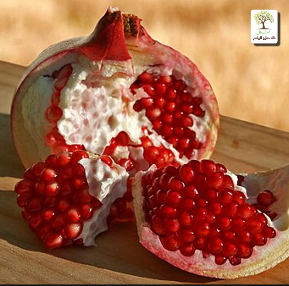 وجودته كما ان لون قشرته تكون قريب من الون الابيض والاصفر و حبوب الرمان بالداخل هشة لذيذة وهو نوع من انواع الرمان القديم محلي بجنوب السعودية . . . نجحت زراعته بكافة مدن السعودية .
